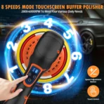 - 【𝗨𝗽𝗴𝗿𝗮𝗱𝗲𝗱 𝗧𝗼𝘂𝗰𝗵 𝗦𝗰𝗿𝗲𝗲𝗻 𝗗𝗶𝘀𝗽𝗹𝗮𝘆 — 𝗘𝗮𝘀𝘆 𝘁𝗼 𝗨𝘀𝗲】The car polishers and buffers are equipped with a touch screen display. Compared with the traditional buffer polisher button, it is easy to use and flexible to adjust. LED digital display can view the gear status. Meanwhile, gear plus and minus modes can be switched freely. It is easy to control, saving time and effort, allowing you to work easily!!!